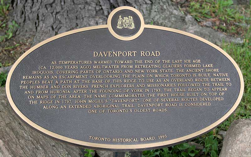 The Tollkeeper’s Cottage was located during its life of tollkeeping at the corner of Bathurst Street and Davenport Road. Davenport Road has a long history of human use that can be traced back to the end of the Ice Ages, when the passageway was used as an ancient foot path by Indigenous people seeking an overland route from Montreal to Niagara. It continued to be an important trail for French fur traders in the 1600’s, and for the first European settlers who arrived in the area in the 1790’s, and was slowly converted into a built road during the 19th century. (history of Davenport Road in more detail is given here).